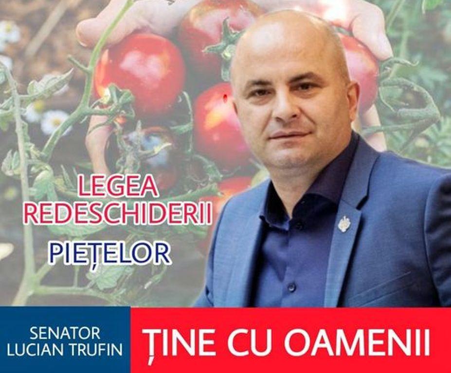 „Suntem în plină campanie electorală. În calitate de candidat la funcția de senator, caut să interacționez, cum este normal, cu alegătorii respectând bineînțeles regulile igienico-sanitare care se impun în această perioadă. Și unde poți întâlni, cetățenii? Vă spun eu – mai ales în piețele agroalimentare. Să vezi spații închise și oameni cu marfa pe jos sau în portbagajul mașinii fix lângă piața închisă, iată imaginea umilirii fermierului român de către actualii guvernanți” a declarat senatorul Lucian Trufin.