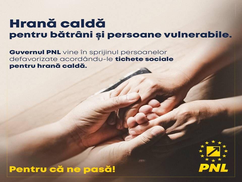 Guvernul PNL vine în sprijinul persoanelor defavorizate acordându-le tichete sociale pentru hrană caldă. Prin prefectură, instituția care reprezintă Guvernul în teritoriu au fost făcute toate demersurile către primării pentru ca cele 11.830 de persoane identificate în judeţul Botoşani să beneficieze de mese calde pe bază de tichete sociale, pe suport electronic. Practic, categoriile defavorizate vor primi un card cu care, pe perioada sezonului rece îşi vor putea procura hrană caldă de la restaurantele şi pensiunile partenere în acest program. Cele 193 de unități care pregătesc și servesc/livrează mese calde și care au acceptat să intre în acest program vor avea obligaţia să livreze hrana caldă la domiciliul beneficiarilor.