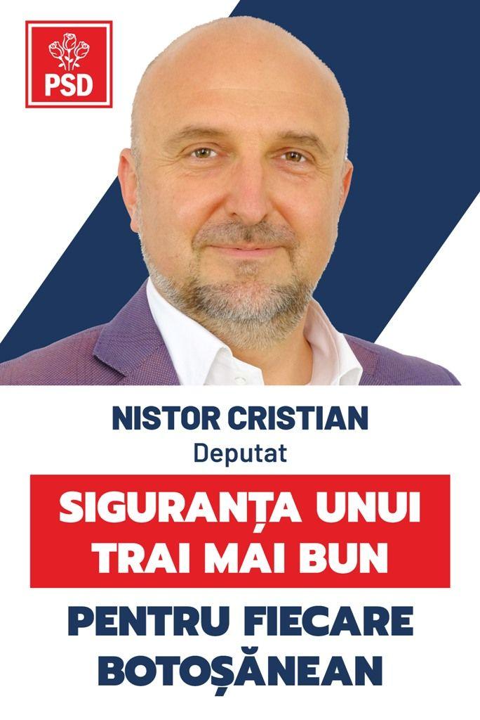 „Candidez pentru a face echipă cu un guvern social-democrat care să aducă bani europeni în Botoșani, prin debirocratizarea legislației în domeniu și prin susținerea administrațiilor locale în atragerea și gestionarea fondurilor structurale. În guvernarea PSD, autoritățile locale devin motorul atragerii banilor europeni. Descentralizăm alocarea fondurilor europene, simplificăm procedurile și eliminăm blocajele din prezent. Lucrăm în parteneriat cu beneficiarii și le acordăm asistență profesionistă în pregătirea proiectelor. Creștem la maxim gradul de transparență prin înființarea registrului național al investițiilor publice. Toate programele actuale de investiții publice locale, PNDL, CNI, ANL și cadastru devin măsuri suport pentru completarea proiectelor pe fonduri europene. Aceasta este noua viziune a PSD pentru dezvoltarea fiecărei localități din România, fără să rămână nimeni în urmă”, a declarat Cristian Nistor.