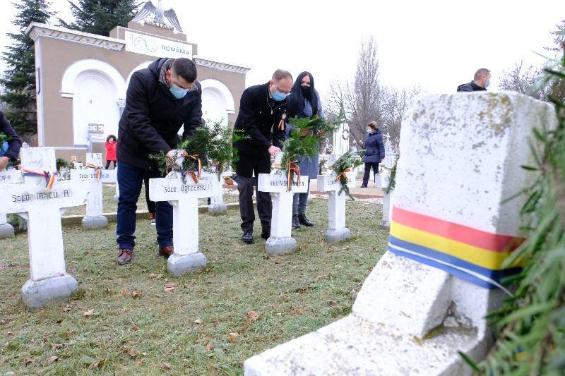 Astfel că azi, de dimineață, social-democrații au organizat o mică ceremonie în locul unde este ridicat monumentul în cinstea adevăraților făuritori ai Marii Uniri, din urmă cu 102 ani. În cimitirul Pacea, la crucea fiecărui ostaș căzut în lupta pentru neam și patrie, membrii PSD Botoșani au așezat crenguțe de brad, legate cu panglici tricolore și au aprins câte o candelă.