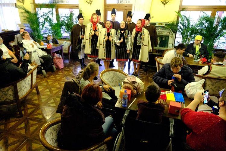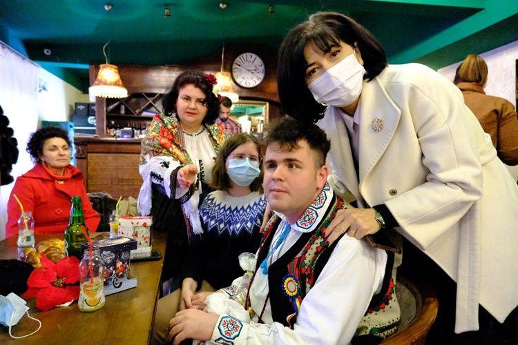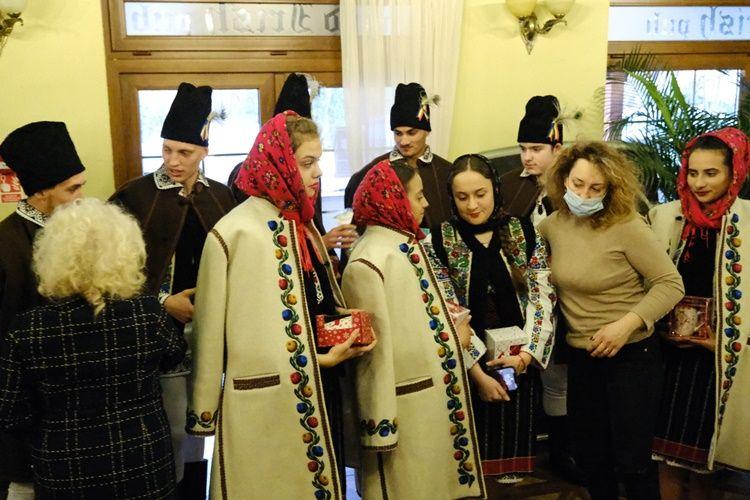 Este vorba despre membrii Ansamblului „Cununa Bălușeni”, coordonați de primarul Claudiu Doroftei, dar și de 4 tineri cu deficiențe de vedere, care au oferit daruri muzicale persoanelor cu deficiențe locomotorii.