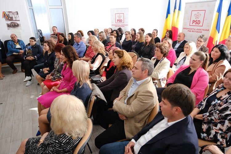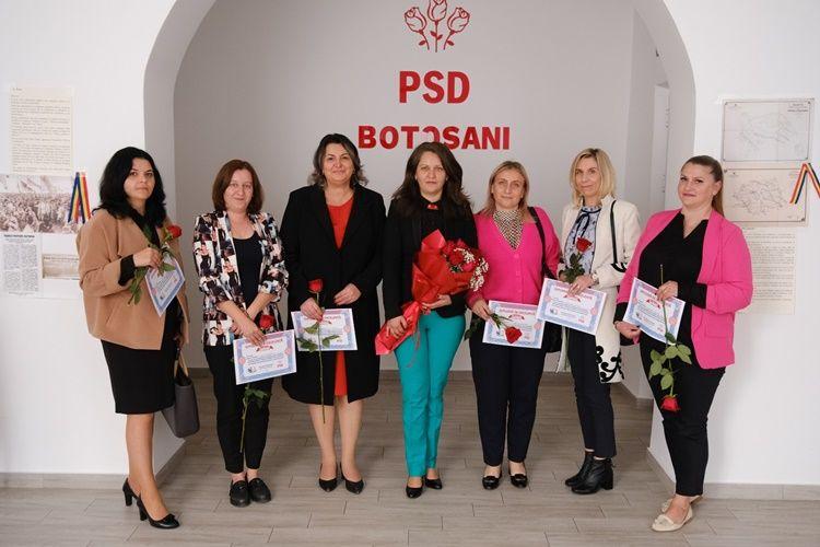 Președintele PSD Botoșani Doina Federovici, alături d secretarul executiv Alexandra Huțu, primarul municipiului Botoșani Cosmin Andrei, de subprefecții Paula Cojocariu-Berențan și Tiberiu Manolache, viceprimarul municipiului Botoșani, Bogdan Buhăianu, administratorul public al municipiului Botoșani, Mircea Magdalena, precum și de echipa inspectorilor școlari, au oferit flori și diplome cadrelor didactice la sediul Organizației Județene, cu ocazia Zilei Educației.