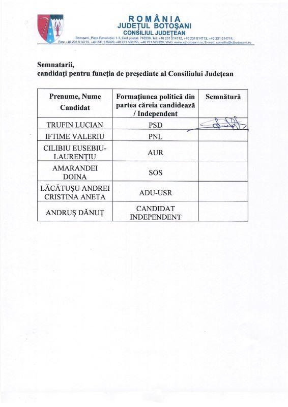 Senatorul Lucian Trufin care candidează pentru șefia Consiliului Județean din partea PSD este singurul care a semnat pactul. „Toată campania mea a fost centrată în jurul mesajului „Continuăm dezvoltarea județului Botoșani”. Deci salut această inițiativă. Toți candidații ar trebui să dea dovadă de maturitate politică și să semneze că vor continua aceste proiecte începute de doamna Federovici. De ce e importantă această garanție? Pentru că dacă proiectele sunt blocate sau nu se realizează la timp, atunci banii europeni se pierd. adică botoșănenii vor pierde aceste sume importante pentru județul nostru”, a explicat Lucian Trufin.
