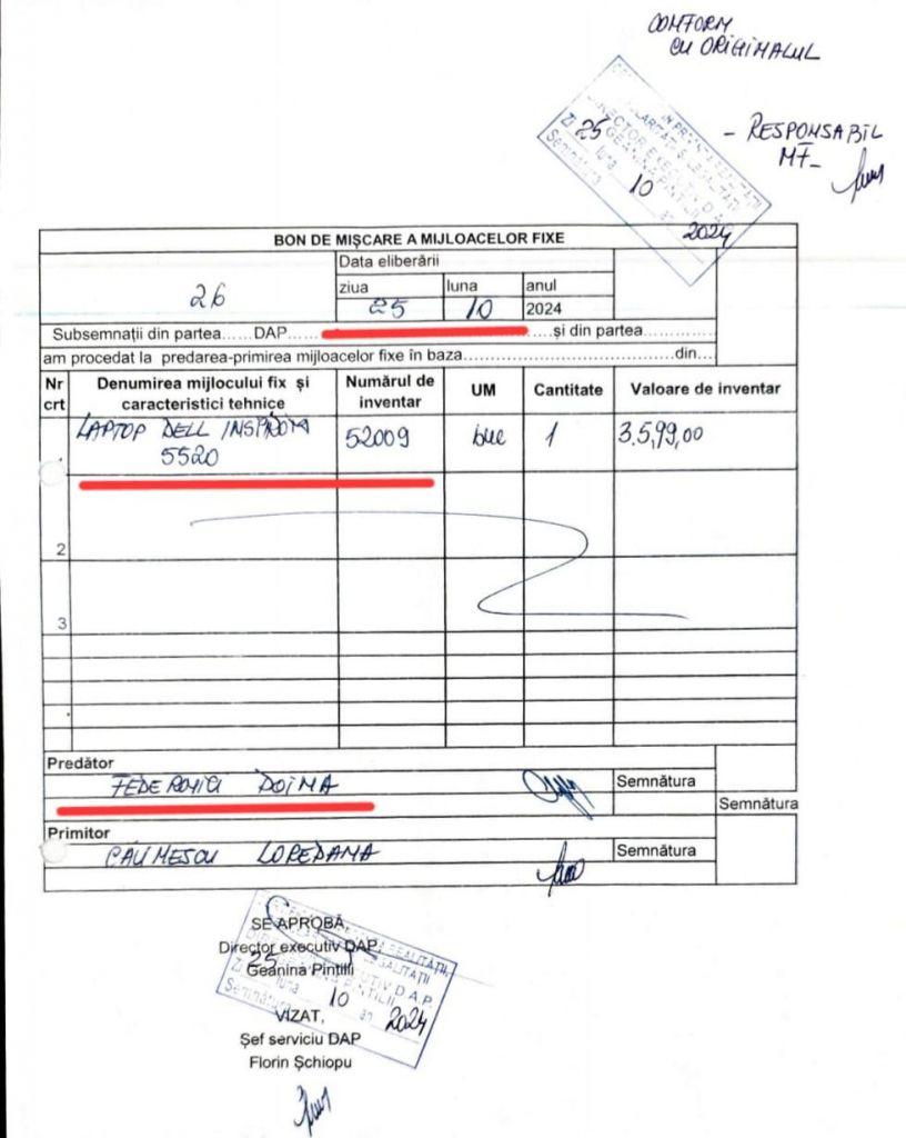 Președinta PSD Botoșani, Doina Federovici, a prezentat procesul verbal privind predarea laptopului pe care l-a folosit pe durata mandatului de președinte al Consiliului Județean Botoșani, răspunzând astfel insinuărilor noului președinte al județului, Valeriu Iftime, că ar fi avut ceva de ascuns în legătură cu activitatea sa.