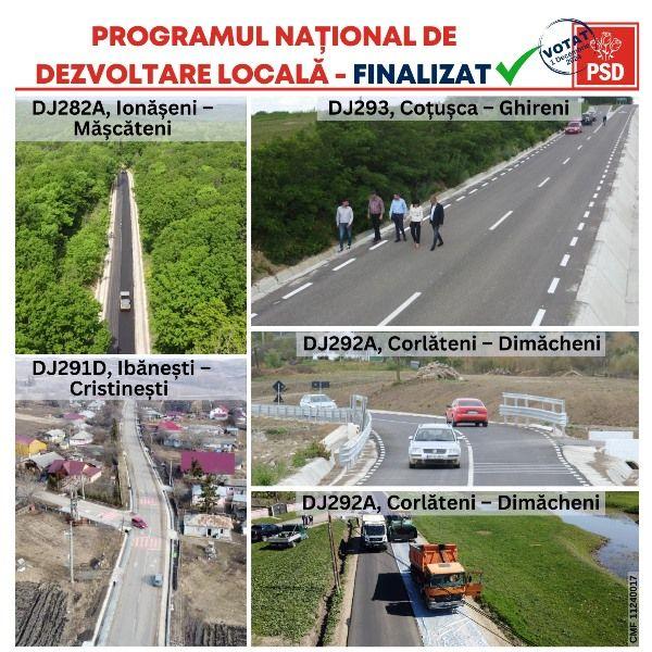 -Sectoarele de drum modernizate prin PNDL - 24,2 kilometri: Corlăteni – Dimăcheni; Ibănești – Cristinești; Coțușca – Ghireni și Ionășeni – Mășcăteni;