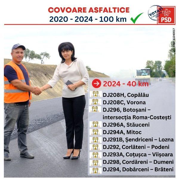 „Investim în drumuri, investim în oameni! Doar așa putem să dezvoltăm județul și să creăm locuri de muncă bine plătite pentru botoșăneni! Pe 1 decembrie, vă invităm să ne susțineți în alegerile parlamentare. Votați pentru continuitatea acestor proiecte și pentru un viitor mai bun pentru toți. Alegeți candidații PSD, poziția 3 pe buletinul de vot! Împreună, suntem mai puternici și mai uniți!”, a conchis Doina Federovici.