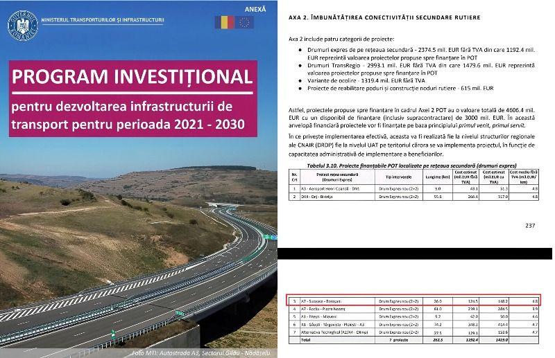 Din fonduri europene se finanțează doar proiectele prinse în Planul Investițional 2021-2030. Acesta, pe lângă Drumul Expres Suceava – Botoșani, mai include alte șase proiecte de drum expres, Drumuri TransRegio, Variante de Ocolire, reabilitări de poduri și construcții de noduri rutiere cu o valoare totală estimată acum cinci ani de 4,6 miliarde euro. Anvelopa financiară disponibilă, inclusiv supracontractarea, este de 3 miliarde de euro. Toate aceste proiecte sunt în concurență, pentru că sumele disponibile sunt mai mici decât cele necesare, motiv pentru care alocarea fondurilor se face pe principiul „primul venit, primul servit”.