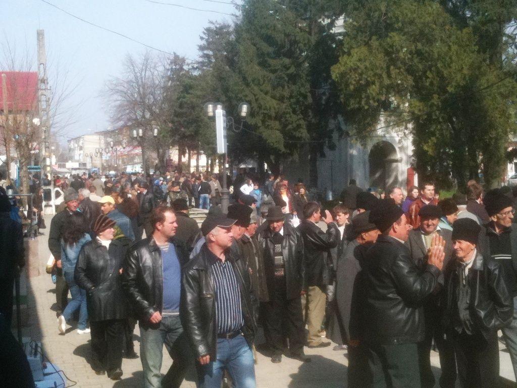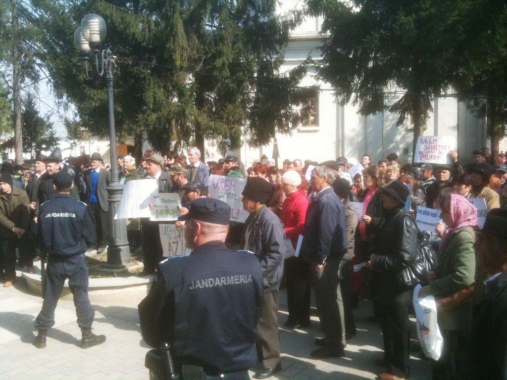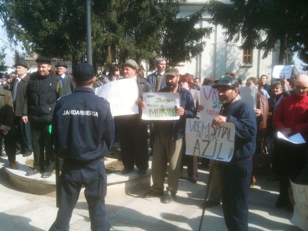 Pe pietonalul din fața pieții cei aproximativ 400 de manifestanţii au scandat lozinci împotriva ministrului Sănătăţii, Cseke Atilla, au strigat „Vrem spitalul înapoi!", iar unii aveau pancarte pe care au scris „Vrem să trăim, nu să murim" sau „Vrem spital nu vrem azil”.