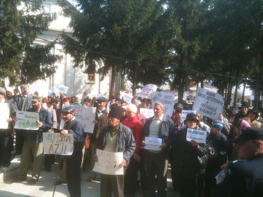 Oamenii au venit să-și exprime nemulțumirea referitor la măsura luată de actualul Guvern de desființare a Spitalului Orășenesc Darabani și transformarea acestuia în Cămin de bătrâni. După nenumărate demersuri și hotărâri ale Consiliului Local Darabani cât și al Consiliului Local Dorohoi s-au făcut promisiuni ca acest spital să devină Secție externă a Spitalului Municipal Dorohoi. Acest lucru nu s-a întâmplat până în momentul de față, lucru care i-au făcut pe cetățenii să ia atitudine la îndemnul Organizației PSD Darabani și să iși exprime nemulțumirea în stradă.