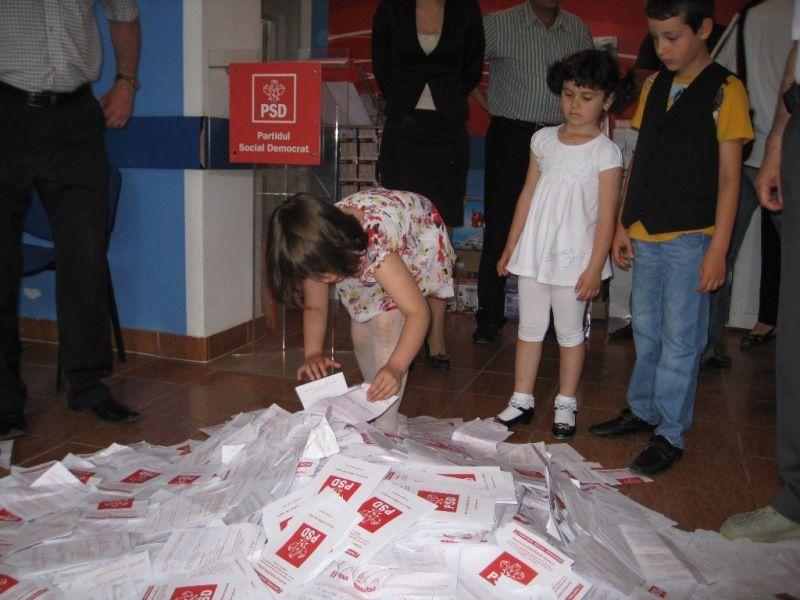 Astazi 3 iunie 2011 la sediul Organizatiei Judetene PSD Botosani, in prezenta mass-mediei locale, au fost desemnaţi în urma tragerii la sorţi câştigătorii tombolei organizate în cadrul proiectului “Vino şi tu alături de mine”.