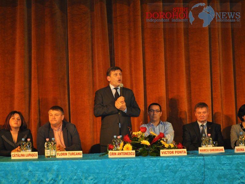 În cuvântul său Crin Antonescu a subliniat: „Suntem două partide care s-au băzut 20 de ani şi care după ce vom scăpa ţara de Băsescu şi de ciuma portocalie şi după ce vom guverna cel puţin patru ani, ne vom bate încă 20 de ani. Avem datoria astăzi să ne concentrăm asupra a trei lucruri: democraţie şi stat de drept, pluralism politic, justiţie independentă şi eficientă, presă independentă, într-un cuvânt stat de drept - dezvoltarea economiei, românii să muncească în ţara lor - un stat civilizat european, în care instituţiile publice să funcţioneze. Această Uniune Social Liberală nu este doar în capul meu sau a lui Victor Ponta”. (DorohoiNews.ro)