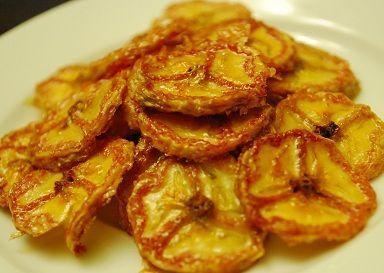 Mod de Preparare: Este un snack des intalnit la indieni si e foarte popular. Puneti suficient ulei la incalzit intr-o oala de vreo 2 litri asa incat chipsurile sa poata pluti in voie. Intre timp curatati bananele de coaja si taiati-le feliute subtirele, de 2mm. Puneti-le cate una in uleiul incins. Daca le puneti pe toate odata se vor lipi intre ele si nu se vor praji asa bine. Tineti-le in baia e ulei cam 5 minute intorcandu-le pe ambele fete. Apoi le scoateti pe un platou, pe hartie prosop. Dupa ce le-ati prajit pe toate, presarati un pic e sare peste ele, desi acest lucru nu e neaparat necesar. Chipsurile sunt bune si fara sare. Dupa ce se racoresc, daca rezista pofticiosilor, ce ramane puteti pastra intr-un borcan care se inchide etans. Nu necesita pastrarea in frigider.