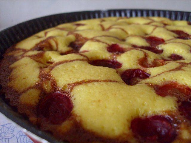 Mod de Preparare: Intr-un castron amestecam faina cu sarea, apoi adaugam margarina si framantam pana cand compozitia devine nisipoasa. Intr-un bol se bate oul impreuna cu zeama de lamaie si apa si se adauga peste aluat. Se framanta aluatul adaugand faina pana devine un aluat potrivit de tare si il punem la frigider 30 de minute. Ungem o tava de tarta cu unt, o tapetam cu faina si intindem aluatul intepandul din loc in loc si il dam la cuptor preincins, timp de 10 minute. Intre timp preparam umplutura: se pune intr-un castron zaharul, zaharul vanilat, smantana, praful de sare, galbenusul, oul si mixam pana cand obtinem o crema. La sfarsit adaugam ciresele si amestecam cu o lingura, apoi turnam compozitia peste tarta si o dam din nou la cuptor timp de 30 de minute.