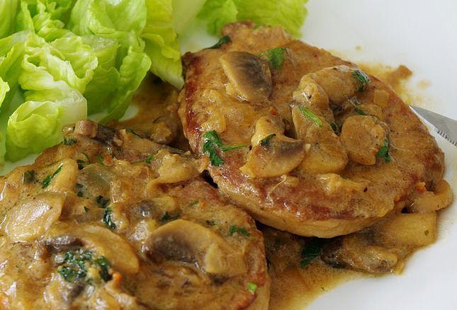 Mod de preparare: Taie carnea de porc in bucati, condimenteaza- le si rumeneste-le in putin ulei. Scoate carnea pe un platou si in grasimea ramasa adauga vinul amestecat cu smantana si mustar. Dupa ce a dat intr-un clocot, pune ciupercile taiate in sferturi si maslinele si potriveste gustul de sare. Cand ciupercile champignon sunt patrunse, adauga bucatile de carne si lasa la cuptor friptura de porc cel mult 30 de minute.