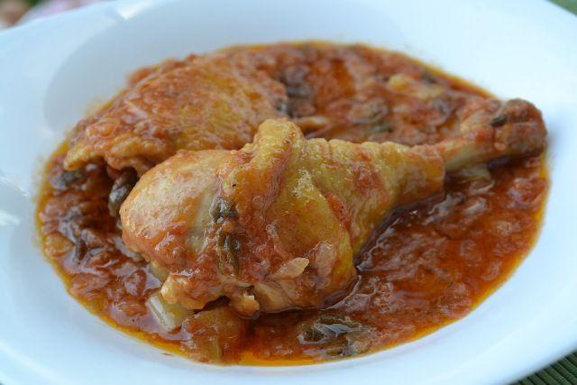 Mod de Preparare: Puiul se face bucăți, se sărează, piperează și se trece prin făină, apoi se pune la prăjit în unt încins. Se toacă ceapa. Când s-a rumenit carnea, se scoate și se pune în locul ei ceapa la călit, până se colorează. Când s-a rumenit, se stinge cu supă, să fiarbă 1 minut. Roșiile se toacă mărunt. Se pun la fiert, peste ceapă, carnea și roșiile, 1 jumătate de oră. Se toacă mărarul, se freacă cu smântâna. Când e gata, se amestecați smântâna și se oferă cu mămăligă.” Dar pentru că e un pic cam multă prăjeală în toată acestă rețetă, am transformat-o în varianta ”light” Ingredientele se cam păstrează, am renunțat doar la făină și unt și am adăugat un pic mai multe condimente: 1-2 frunze de dafin și o crenguță mică de cimbru. Aveam nevoie de supă, așa că am pus puiul tranșat în bucăți potrivite împreună cu ceapa tocată la fiert pentru 20 minute. Apă nu am adăugat decât cât să fie puiul acoperit. Tocăm roșiile mărunt și le adăugăm peste pui împreună cu frunzele de dafin și crenguța de cimbru. Lăsăm să fiarbă pentru jumătate de oră la foc mic. Am servim cu smântână amestecată cu mărar tocat deasupra și mămăliguță.