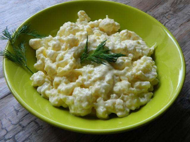 Mod de Preparare: Conopida o separam in buchetele mai mici, o spalam bine si o punem la fiert in apa cu sare. Dupa fierbere, scurgem apa si lasam conopida sa se raceasca. Taiem conopida fiarta si racita, cubulete mici cu ajutorul unui cutit. Intr-un castron punem cele doua galbenusuri si mustarul si frecam cu mixerul, adaugand ulei treptat, si spre final zeama de lamaie. Amestecam conopida cu maioneza si ceapa, condimentam cu sare si piper dupa gust.