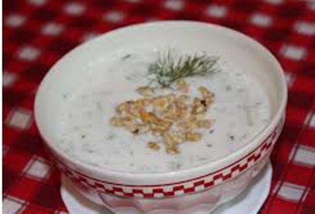 Mod de Preparare: Intr-un castron amestec iaurtul cu apa si cu castravetii curatati de coaja si taiati cubulete mici. Punem castronul in frigider pentru cel putin 30 min. Apoi amestecam acesta supa cu usturoiul zdrobit si frecat cu 2 linguri de ulei de masline, condimentam cu sare si piper dupa gust si asezonam cu marar tocat marunt.