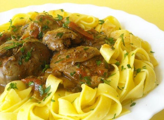 Mod de Preparare: Ceapa o taiem marunt, si o calim in unt cu ulei de masline. Ficateii ii taiem in bucati mai mici si ii prajim cam 2- 3 minute, apoi adaugam ciupercile taiate felii subtiri,pasta de rosii, vinul, si salvia taiata marunt Lasam la foc mediu pana fierbem pastele. Daca scade sosul de pe ficatei si e nevoie mai putem completa cu putina apa. Cand sunt gata ii dam la o parte si ii amestecam cu pastele, le stropim cu ulei de masline si presaram parmezan ras.