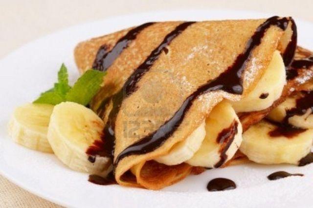 Mod de Preparare: Topiti ciocolata data prin razuitoare cu untul apoi adaugati laptele, lasati pe foc mic pana ce laptele este caldut. Spargeti ouale peste lapte, adaugati apa minerala si mixati 1-2 minute apoi adaugati faina treptat mixand pana ce toata faina este incorporata. Lasati compozitia sa se odihneasca cam 30 de minute apoi turnati un polonic din compozitie intr-o tigaie incinsa unsa cu putin ulei. Cand clatita incepe sa se desprinda de pe margini si compozitia s-a inchegat intoarceti pe partea cealalta si coaceti pana ce capata o culoare aurie. Imi cer scuze dar nu am mai apucat sa fac poze cu pasii de urmat dar era cam tarziu si imi era pofta nebuna, promit sa fac data viitoare. Cand clatitele sunt gata umpleti cu cerma de branza si 2-3 felii de banana. Alta varianta de umplutura va recomand frisca si capsune sau ciocolata si ananas. Serviti calde.