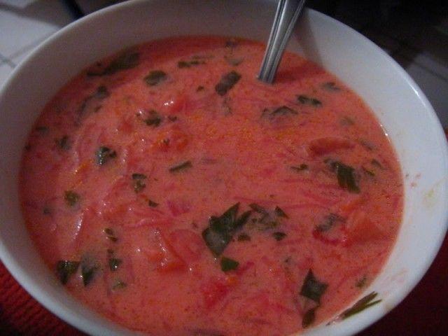 Mod de preparare: Curata sfecla rosie si tai-o cubulete. Pune-o la fiert in aproximativ 3 l de apa. Separat, curata ceapa si adaug-o in supa de sfecla rosie. Acopera vasul si lasa sa fiarba la foc moderat. Dupa 40 de minute, pune un praf de sare, zaharul si otetul. La final, scoate ceapa si lasa sa mai dea in cateva clocote. Serveste supa de sfecla rosie cu smantana.