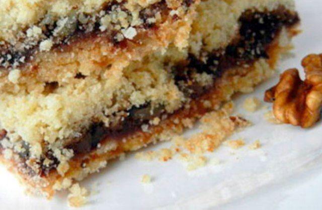 le amestecam bine cu mixerul, pana obtinem o compozitie omogena. Compozitia obtinuta o impartim in doua. In jumatate punem gemul sau dulceata, iar in cealalta jumatate amestecam nucile maruntite. Ungem o tava cu ulei, o tapetam cu faina si turnam cele 2 parti ale compozitiei. Dam tava la cuptor pentru 40 min, la foc mediu. Pentru verificare facem proba scobitorii. Dupa ce s-a racit scoatem prajitura din tava si o asezam pe un platou, apoi turnam deasupra glazura si presaram nuca macinata.
