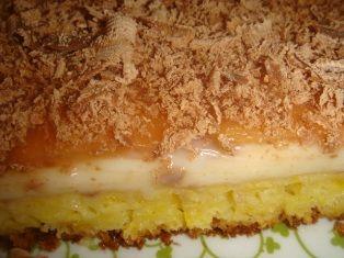 Ingrediente: 1 pachet mic de piscoturi, 1 plic de gelatina, 1L lapte, 1 lamaie, 2-3 portocale, 2 oua, 3 linguri de faina sau amidon de porumb, 1 pachet de unt.