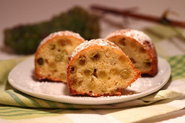 Mod de Preparare: Punem 3 linguri cu faina (din cele 5) peste boabele de struguri si amestecam, astfel incat sa le acoperim cu un strat fin. Incalzim cuptorul. Pregatim un bol in care punem ouale si zaharul si mixam pana cand zaharul se topeste, amestecul isi dubleaza volumul si devine albicios (aproximativ 5-7 minute). Adaugam cele 400 gr. de faina, praful de copt, un varf de lingurita cu sare, esenta de vanilie si untul topit. Amestecam usor, cu o spatula, pana la omogenizare. Punem boabele de strugure si amestecam usor. Pregatim 2 forme pentru chec pe care le ungem cu cubul de unt si le tapetam cu cele 2 linguri cu faina ramase. Turnam compozitia pentru chec in tavile pregatite si nivelam usor deasupra. Introducem checurile cu fructe in cuptorul incalzit la 180 de grade pentru 30-40 de minute. Cand prajiturile cu struguri trec testul scobitorii si sunt rumenite deasupra, scoatem tavile din cuptor si le lasam sa se racoreasca. Scoatem checurile, partial racite, pe un gratar si le pudram cu zahar. Portionam si servim.