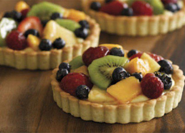 Mod de preparare: Zdrobeste biscuitii si amesteca-i cu untul moale. Pune amestecul in tava de tarta si preseaza bine, inclusiv pe margini. Da la cuptorul incins 10-15 minute. Lasa sa se raceasca. Intr-un vas, freaca galbenusurile cu zaharul si vanilia (dupa gust). Cand ai obtinut o crema fina, incorporeaza amidonul si toarna treptat laptele caldut (nu fierbinte). Pune vasul la bain-marie si amesteca. Da deoparte dupa ce crema a captatat o consistenta mai groasa. Pune untul si amesteca bine. Lasa sa se raceasca. Toarna crema de vanilie deasupra blatului de biscuiti si da la rece. Pune deasupra fructele doar in momentul servirii.