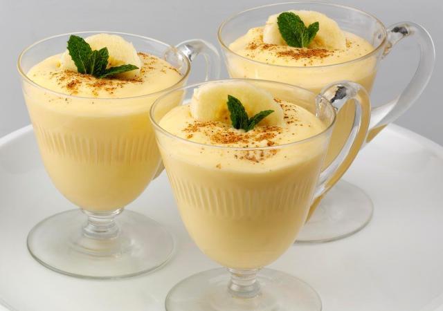 Metoda de preparare: Lasati gelatina sa se dizolve dupa indicatiile ambalajului. Faceti un piure din banane si apoi puneti-l intr-un recipient adecvat si incalziti cu 200 ml de smantana si zaharul, apoi se adauga gelatina dizolvata si se lasa amestecul sa se raceasca, agitandu-se periodic. Bateti smantana ramasa cu lapte condensat. Cand amestecul de banane este complet rece, se adauga frisca, amestecand usor cu o lingura de lemn. Lasam crema de banane la frigider, aproximativ 2 ore, iar inainte de a o servi, ornam fiecare pahar cu frisca si putina ciocolata rasa.
