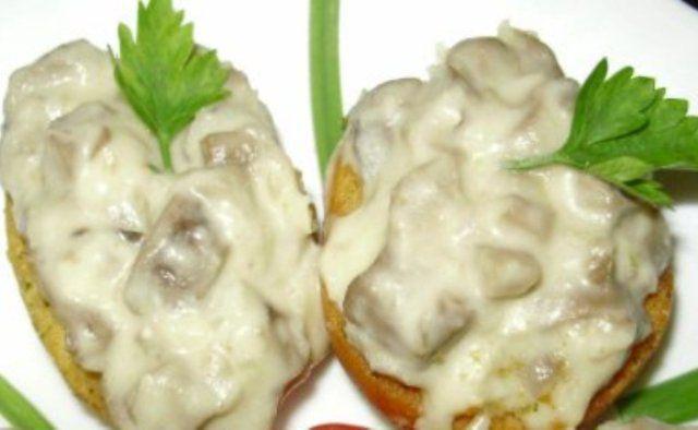 Mod de Preparare: Se incinge uleiul intr-o tigaie adanca, apoi se rastoarna ciupercile taiate in sferturi, usturoiul, ardeiul iute si se calesc 5 minute. Se acopera tigaia cu capac si se lasa sa se inabuse in suc propriu inca 8-10 minute. Adaugam crema de branza, amestecam bine sa se acopere ciupercile cu crema, asezonam si mai lasam pe foc mic 3 minute. Se prajesc usor baghetele, se pune pe fiecare bucata amestec fierbinte de ciuperci si se rasneste un pic de piper negru. Sunt atat de bune, nu te poti opri din mancat !