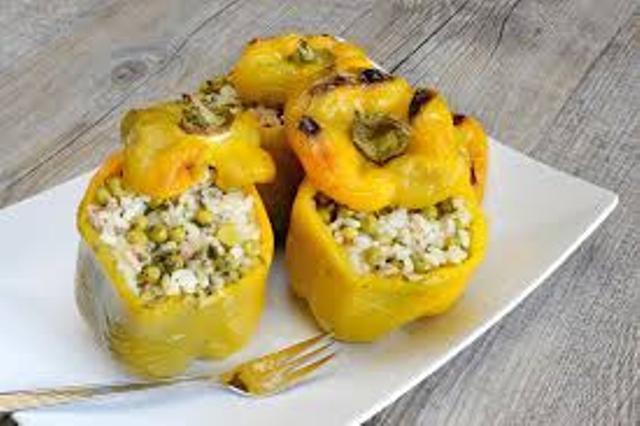 Mod de preparare: Ardeiul usor copt si mazarea hranitoare fac din aceasta reteta o cina ideala. Mazarea contrasteaza frumos cu ardeiul si orezul alb asa ca exista si o incantare vizuala. Puneti in doua vase separate apa si dati in fiert mazarea si orezul. Le fierbeti pana se inmoaie usor. Le scurgeti de apa si le puneti deoparte. Tocati ceapa si caliti-o in ulei cu usturoiul pisat. Adaugati mazarea si orezul si acoperiti vasul cu un capac. Lasati 3-4 minute dar amestecati din cand in cand. La final adaugati patrunjelul tocat si pottriviti cu sare si piper. Luati ardeii si le taiati un capac. Ii scoateti cotorul si semintele si ii umpleti cu mixul de orez si mazare. Ii puneti intr-un vas din sticla sau intr-o tava mai inalta. Ideea este ca tava sa cuprinda fix 4 ardei, ca sa va asigurati ca ii preparati stand in pozitie verticala. Bineinteles, cuptorul sa fie preincalzit la 200 grade C. Cand introduceti tava in cuptor coborati temperatura la 180. Tineti ardeii 20-30 de minute, pana ce se inmoaie si se rumenesc. Ca sa fie mai usor de scos din tava puneti hartie de copt inca de la inceput. Pentru aspectul acela de ardei copt pe gratar, luati capacele si le puneti pe tigaie, cu exteriorul in jos. Daca aveti tigaie cu gratar e perfect. Serviti cat sunt calzi pentru a simti cat mai bine gustul dulceag al mazarei.