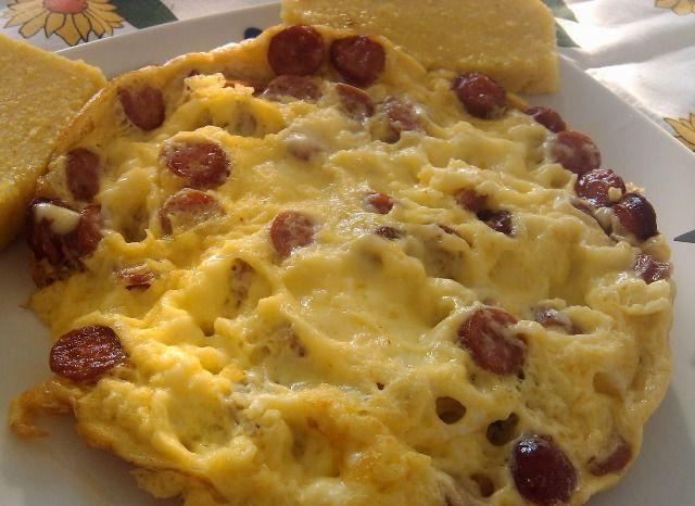 Mod de Preparare: Am pus la calit cârnatii, fara ai lasa sa se arda. Separat am batut bine 3 oua, adaugând brânza de burduf taiata bucati. Am pus amestecul de oua peste cârnati, am pus capac si am lasat câteva minute, pâna a fost gata. Am servit alaturi de bucati de mamaliga rece.