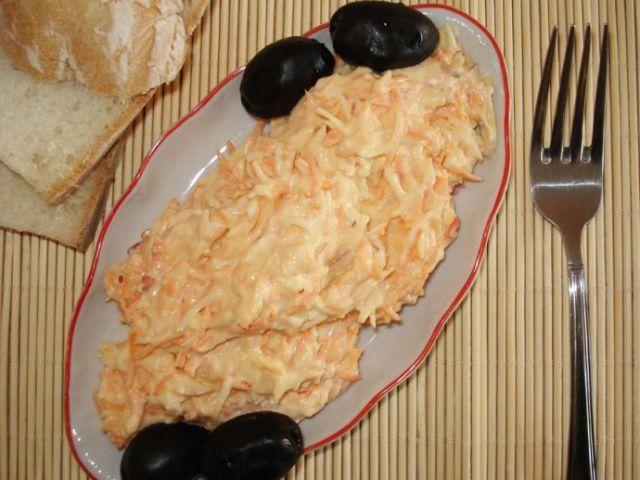 Mod de preparare: Se dau pe razatoare telina, morcovul si marul, pe care il stoarcem de zeama, apoi preparam maioneza. Dupa ce maioneza este gata adaugam peste legumele razuite si amestecam bine. La sfarsit se orneaza cu fire de marar sau de patrunjel.