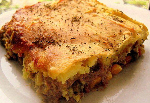 Mod de preparare: Cei patru cartofi se curata, se taie cuburi si se pun la fiert in apa cu sare. Dupa ce s-au fiert, ii scurgem de apa si ii pasam bine, apoi amestecam bine cu untul, laptele, faina si drojdia. Se adauga putina sare si putin piper si se lasa deoparte 20 de minute. In timp ce lasam aluatul deoparte ne ocupam de umplutura. Ceapa si morcovul se toaca marunt si se pun la calit pana cand ceapa devine usor transparenta, apoi se adauga carnea tocata si se amesteca. Se lasa pana cand carnea se albeste, iar zeama din tigaie mai scade. Adaugam conserva de rosii, apoi amestecam bine. Se adauga sare si piper dupa gust, iar cand e gata se da deoaparte, se adauga oul pentru a omogeniza compozitia apoi se las ala racit. Luam o bucata din aluat si o intindem intr-un vas de yena sau termorezistent, uns in prealabil cu unt. Se adauga compozitia de carne, nivelam, apoi se adauga si ce a mai ramas din aluat si se presara deasupra cu cascaval ras. Se lasa la cuptor timp de 35-40 de minute pana se rumeneste deasupra. Placinta cu carne si cartofi se poate servi atat calda, cat si rece.