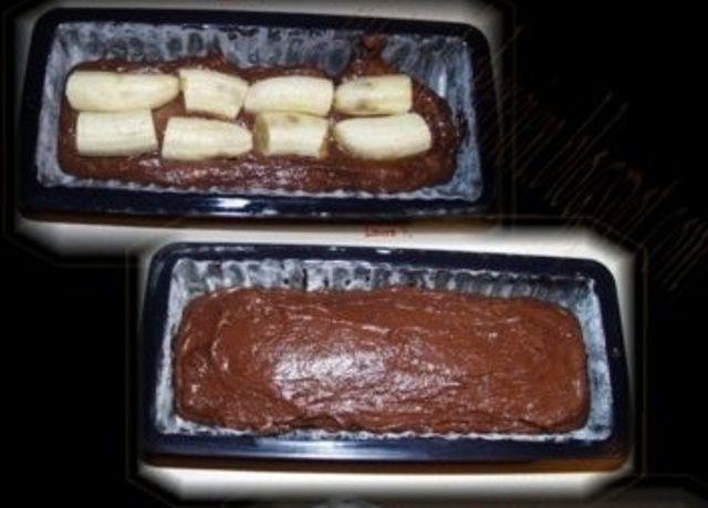 Mod de Preparare: Untul se freaca spuma pina ce zaharul sa topit si se adaoga pe rind ouale, zaharul vaniliat, sarea, laptele si faina amestecata cu cacaoa si praful de copt. Forma de chec se unge cu unt si se tapeteaza cu faina. Merele sau bananele se curata de coaja si se ung cu suscul de lamiie pt. a impiedica oxidarea. O parte din aluat se toarna in forma de chec, se aseaza bucatile de banane. Acestea se acopera cu restul de aluat. Totul se introduce in cuptor pt. ca 45 min. Se scoate, se lasa 5 min. sa se raceasca in forma, dupa care se rastoarna pe un platou. Se pudreaza imediat cu zahar sau se glaseaza cu ciocolata. Este de recomandat linga o felie din acest chec sa se serveasca si putina frisca. Bananele pot fii inlocuite cu ori si ce fructe.