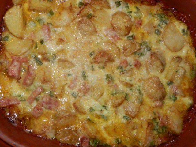 Mod de Preparare: Curatam cartofii, ii spalam bine apoi ii taiem feliute si ii punem la prajit in ulei incins. Cand sunt aproape gata, turnam deasupra ouale batute bine si lasam sa se rumeneasca dupa preferinta. Condimentam. Scoatem pe un platou cu servetel ca sa absoarba uleiul. Deasupra presaram branza si patrunjel verde tocat. Stiu ca are mii de calorii dar e asa de bun.