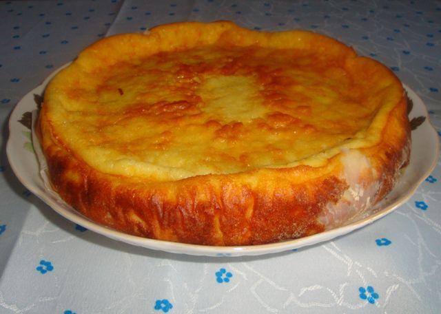 Mod de preparare: Cuptorul se preîncălzeşte la 160 de grade Celsius. Ouăle se separă. Gălbenuşurile şi zahărul se freacă bine cu untul şi un praf de sare, folosind un mixer, până se topeşte zahărul. Se adaugă brânza, smântâna, apoi făina amestecată cu praful de copt şi se amestecă bine, până se desfac cocoloaşele. Albuşurile se bat spumă, separat. Când s-au întărit suficient, se încorporează cu o spatulă în amestecul cu gălbenuş. Se adaugă vanilia, coaja de lămâie şi se amestecă uşor. La final se adaugă stafidele. Compoziţia se toarnă într-o formă rotundă unsă cu puţin unt. (Deasupra se presară cacao.) Se coace 45-50 de minute.
