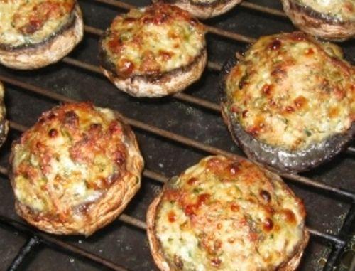 Mod de preparare: Incalziti cuptorul la 200C. Curatati si spalati ciupercile. Asezati in tava. Se topește untul într-o tigaie mare la foc mediu-mare. Adaugati ceapa, usturoi, cozile ciupercilor, se condimentează cu sare și piper. Gatiti, amestecand frecvent până când legumele sunt moi, aproximativ 5 minute. Se adauga carnea și se gateste pana isi schimba culoarea. Se incorporeaza pesmetul și parmezanul, gatiti, amestecand, timp de 1 minut. Adăugați spanac, se reduce focul la mediu-scăzut, se acopera cu un capac și se gateste aproximativ 2 minute. Amestecati si asezonati cu sare și piper. Se lasa sa se raceasca, apoi se proceseaza amestecul la blender. Umpleti ciupercile. Dati la cuptor pentru aproximativ 20 de minute.
