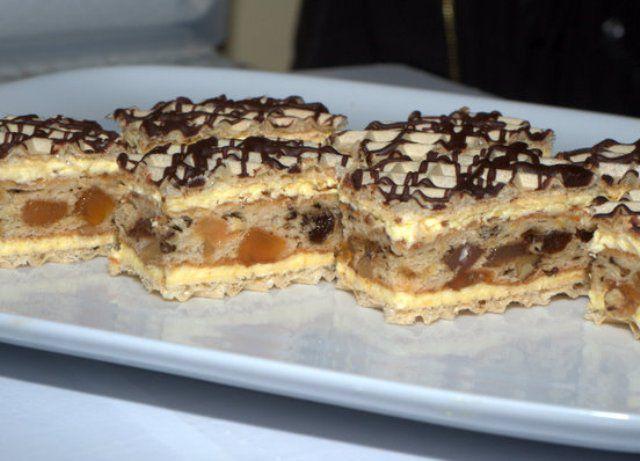 Mod de Preparare: Biscuitii se dau prin masina de tocat, sau se pun la robot. Se adauga intr-un castron. Se pune laptele pe foc impreuna cu zaharul, untul si cacaoa. Se lasa sa fiarba pana cand se topeste tot zaharul. Se lasa sa se raceasca putin apoi se adauga peste biscuit. Se mesteca bine pana cand totul devine o pasta. Se adauga, visinele, stafidele si visinata peste biscuiti. Daca dam si la copii vom scoate visinele si visinata din compozitie si vom adauga esenta de rom. Se tapeteaza o forma de cozonac cu folie alimentara. Se pune o foaie de napolitana pe fundul unei forme de cozonac. Se pune un rand de crema, foaie, crema si tot asa pana terminam crema. Ultima parte trebuie sa fie foaie de napolitana. Se lasa la frigider pana se intareste bine. Se glazureaza cu ciocolata topita sau se poate lasa asa.