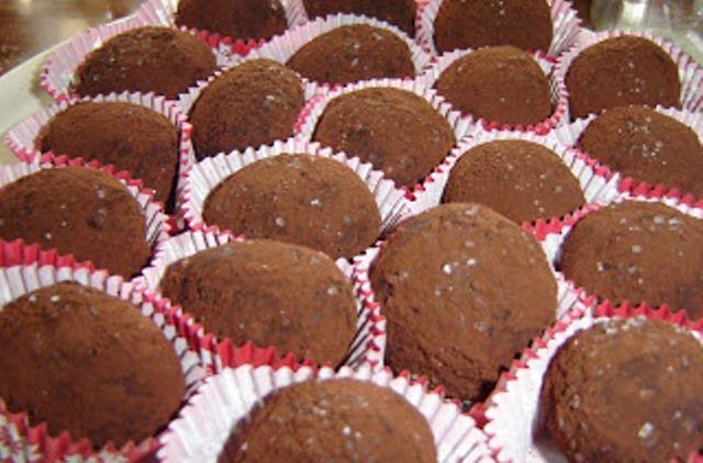 Mod de Preparare: Biscuitii i-am dat printr-o rasnita de cafea, la fel si alunele. Am facut un sirop din apa, zahar, ciocolata si cacao puse pe foc sa clocoteasca putin, iar dupa ce s-a mai racorit am adaugat 5 linguri de rom (sau o fiola de esenta). Am amestecat apoi siropul fierbinte cu biscuitii si alunele. Am framantat compozitia cu mana si am adaugat untul ca sa pot forma cartofii. Am luat in maini cate o lingura din compozitie, am pus in mijloc cate una, pana la 3 visine, si am format cartofii. Apoi i-am tavalit pe fiecare in amestecul de cacao si zahar, mai multa cacao decat zahar, iar la urma i-am asezat pe toti in hartii pentru briose.