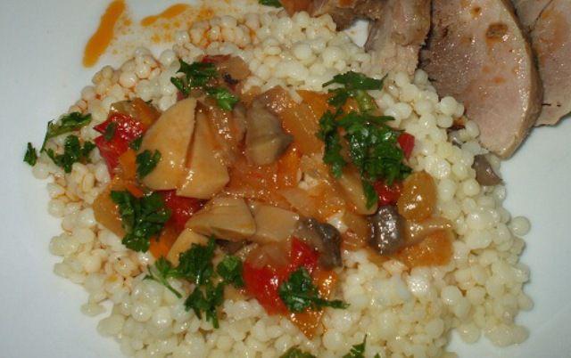 Mod de Preparare: Ceapa, ardeiul si ciupercutele se maruntesc dupa preferinta si se calesc in ulei sau unt. Cuscus-ul se fierbe in apa, atat cat scrie pe punga (cca Se fierbe al dente (bobul nu trebuie sa se rupa de fiert ce e) dupa care se strecoara si se caleste in unt 2 minute. Se adauga peste el ciupercile calite. Se condimenteaza si sunt gata de servit.