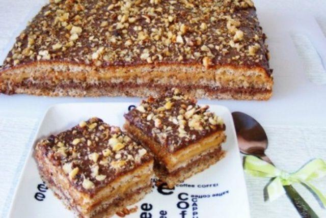 Crema: zahărul se caramelizează la foc mic. Peste zahărul topit se adaugă untul tăiat cubuleţe și se amestecă bine pană se topește. Se pune din nou la foc mic, apoi se adaugă gălbenuşurile pe rând. Compoziția obținută trebuie să aibe consistență densă. Abia atunci se poate adaugă nuca taiată. Crema răcită se adaugă peste ciocolata albă rasă pe blat.