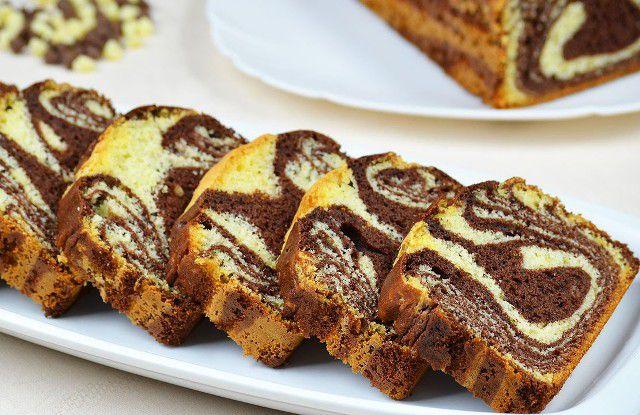 Mod de Preparare: Ouale se separa; albusurile se bat spuma cu praful de sare si zaharul adaugat cate putin, pana rezulta o bezea spumoasa. Galbenusurile se amesteca cu uleiul, laptele si esenta. Se amesteca cu albusurile spuma. Se pune faina lingura cu lingura, amestecand usor cu o lingura de lemn sau o spatula, de jos in sus. Se toarna compozitia in tava tapetata cu hartie de copt, pastrandu-se cateva linguri care se amesteca cu cacaoa. Se toarna compozitia cu cacaoa deasupra si cu ajutorul unui betisor se amesteca cu miscari circulare. Se coace la foc mic pana trece proba cu scobitoarea.