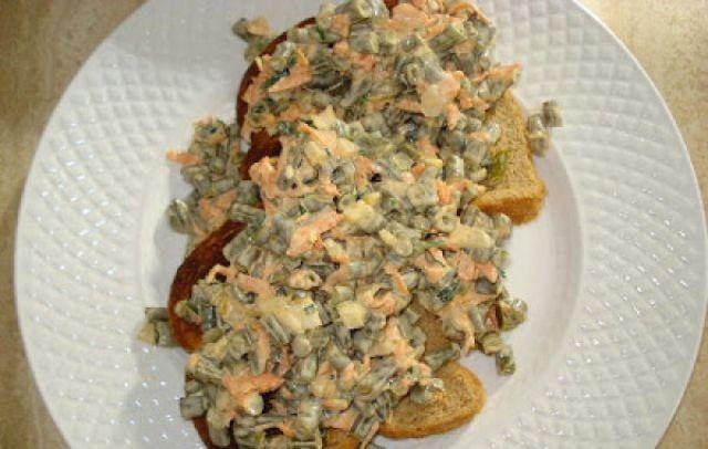 Mod de Preparare: Fasolea se curata de codite, si se fierbe, dupa ce sa fiert bine, se taie bucatele mici: se rade morcovul, se taie patrunjelul, ceapa si 2-3 catei de usturoi. Se adauga maioneza, sarea si piperul. Se amesteca bine, si se lasa la frigider circa 15 minute.
