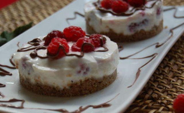 Mod de Preparare: Zdrobim biscuitii cu sucitorul sau la robot si ii amestecam cu untul topit. Pregatim gelatina: o adaugam intr-un ibric in 5 linguri de apa, o lasam sa se umfle dupa care o incalzim usor (nu o fierbem) si amestecam pana se dizolva. Amestecam crema de branza, branzica proaspata, zaharul, zaharul vanilat si coaja de portocala. Adaugam gelatina in compozitie Adaugam si zmeura, amestecand cu grija sa nu distrugem boabele si pastrand cateva pentru ornat. Pregatim inelele si punem compozitia de biscuit, presam bine. Adaugam si compozitia de branza, impartind-o egal intre cele patru inele, si ornam cu zmeura. Dam la rece. Ornam cu ciocolata.