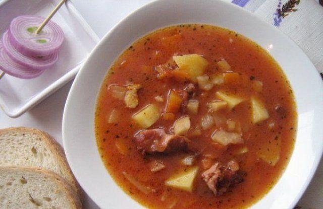 Mod de Preparare: Se curata cartofii, se spala si se taie in cuburi. Se tin in apa, pentru a nu se inchide la culoare. Ceapa se taie marunt, ardei se taie julien, rosiile se decojesc si se taie in cuburi mici, iar baconul se taie felii sau cuburi. Se pune intr-o oala 2-3 linguri de ulei si se adauga baconul. Se lasa sa se rumeneasca la foc mic, amestecand din cand in cand. Cand baconul incepe sa se rumeneasca, se adauga si ceapa tocata. Cand ceapa a devenit translucida, se adauga feliile de ardei si rosiile cubulete. Se mai lasa la rumenit inca 2-3 minute. Se adauga apoi cartofii, boabele de piper, cubul de legume si se complecteraza cu apa Cat legumele au fiert se aduga mararul tocat si se ia de pe foc. Se lasa cca 10 minute. Se pregateste sosul adaugand zeama din ciorba in smantana, putin cate putin, si se amesteca pentru a se omogeniza. Sosul astfel obtinut, se toarna la loc in oala, amestecand pana se omogenizeaza. In acest moment ciorba este gata si buna de servit.