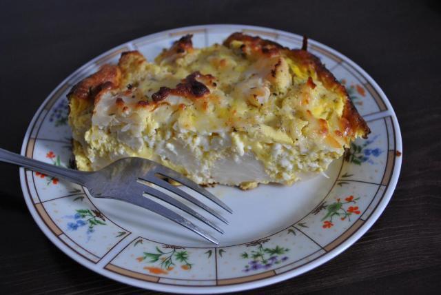 Mod de preparare: Conopida se spală, se desface în bucheţele şi se opăreşte timp de 5 minute, apoi se lasă la scurs şi se toacă mărunt. Se toacă şi ardeii, iar caşcavalul şi telemeaua se dau pe răzătoarea mare. Se pun într-un vas termorezistent, care a fost înainte uns cu unt. Separat se bat două ouă peste care se pune laptele, apoi sare şi piper. Se adaugă peste compoziţia din vas. Mai este nevoie şi de un sos, care va rumeni sufletul şi îi va da o crustă crocantă. Batem oul rămas cu două linguri de smântână şi puţin lapte, apoi îl turnăm şi pe acesta în vasul termorezistent. Preparatul se dă la cuptor pentru circa 40 de minute. Se poate servi ca atare, sau sub formă de garnitură alături de piept de pui la grătar.