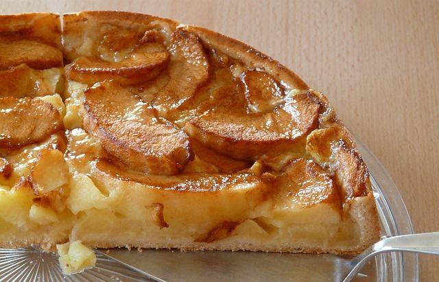 Mod de Preparare: Se mixeaza ouale cu zaharul si un praf de sare, apoi se adauga untul la temperatura camerei, taiat in cubulete mici si se continua mixarea pana ce crema devine spumoasa. Se presara faina in ploaie amestecata cu praful de copt. Se toarna aluatul intr-o tava de tarta unsa cu ulei si tapetata cu faina. Deasupra se aseaza felii de mere si de pere, iar in centru 3 mere taiate si curatate de samburi si coaja, crestate, in care se pune un praf de zahar amestecat cu scortisoara. Se presara un pic de zahar peste toate fructele si se da tava la cuptor, la 180 °C. Se face proba scobitoarei. Cand se scoate din cuptor se ung merele din centru cu peltea de mere topita sau cu miere amestecata cu un pic de scortisoara.