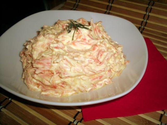 Mod de Preparare: Iaurtul se pune intr-o strecuratoare sa se curga zerul si sa ramana o crema fina de iaurt. Morcovii se dau pe razatoarea mare si se calesc in uleiul de masline, amestecad in continuu, timp de 7-8 minute. Apoi se lasa sa se racoreasca si se amesteca cu crema de iaurt. Se adauga sare dupa gust si usturoiul pisat.