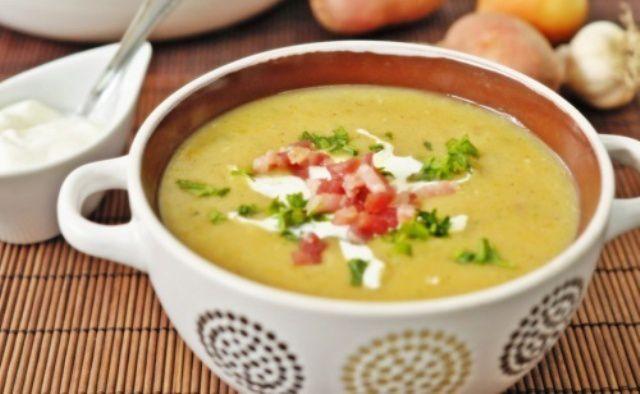 Mod de Preparare: Intr-o oala se pun la fiert legumele curatate de coaja si taiate in bucati. Cand sunt aproape fierte se adauga sare si piper, dupa gust. Cand legumele sunt fierte se separa de apa in care au fiert si se paseaza. Eu n/am pasat telina si albitura, nu-mi place gustul lor in exces. Dupa ce au fost pasate bine, ca un piure fin, se adauga treptat apa in care au fiert legumele, pana se obtine consistenta dorita a supei-crema. Atunci cand supa se va raci, va deveni semnificativ mai groasa, asa ca nu va zgarciti cu seama. Baconul se taie felii subtiri si se prajeste. Se pune intr-o tigaie fara adaos de ulei, se va praji in grasimea care se va topi din el. Tigaia cu baconul rumenit se rastoarna peste supa, cu tot cu grasimea rezultata. Supa devine astfel absolut delicioasa, desi nu chiar dietetica. Eu am pastrat cateva fasii de bacon cu care am decorat farfuriile cu supa, impreuna cu cateva crutoane si ceapa verde taiata marunt.